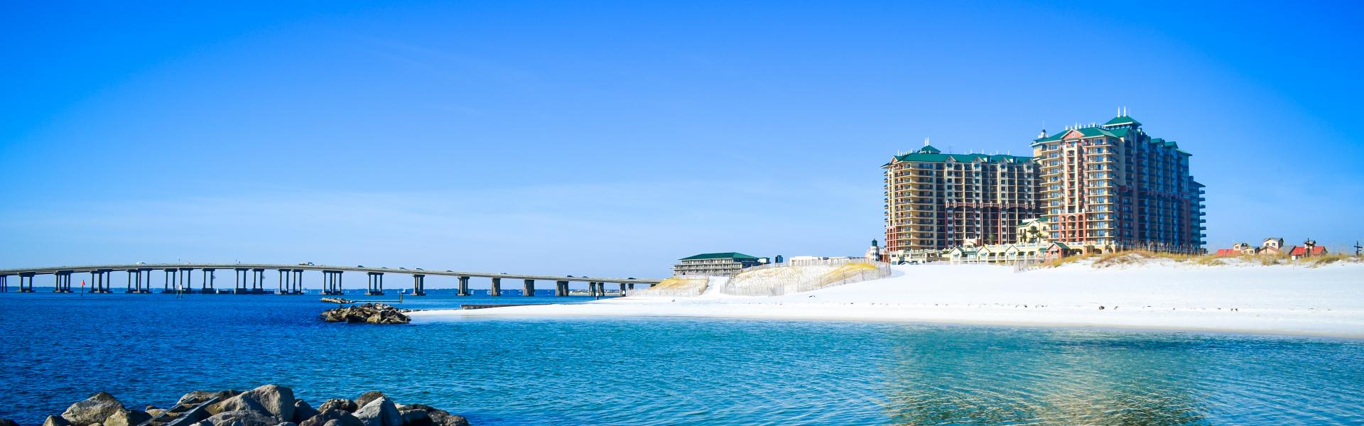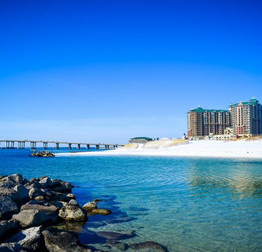 Named after the illustrious fishing captain Leonardo Destin, who lived here in the mid 19th century, Destin is nowadays a glamorous resort town in the Florida Panhandle. Overlooking the Gulf of Mexico, this seaside town is renowned for its clean beaches and emerald waters. An oceanfront Destin vacation rental is the perfect place to set up camp.